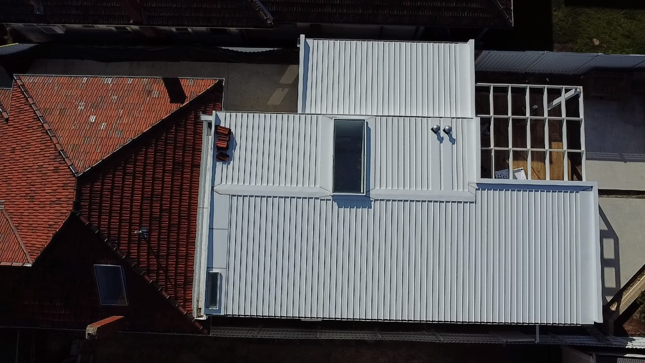 Fitted Kliplok 700 roofing, known for its durability and watertight performance